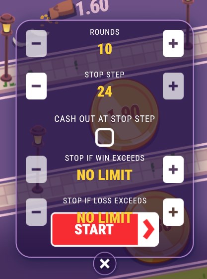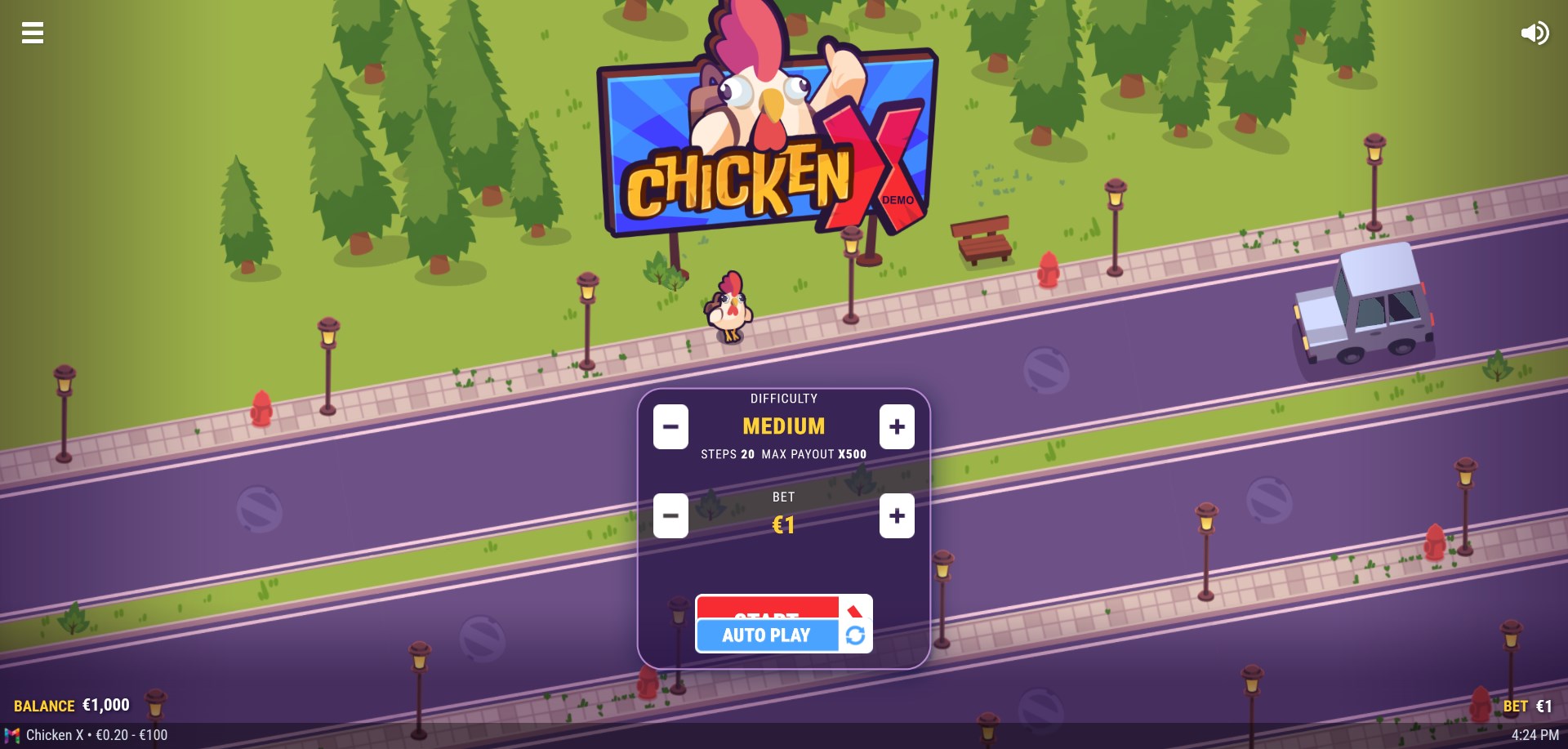 Chicken X nie pozwala na automatyczne obstawianie. Mimo to nadal możesz opracować strategie, aby zwiększyć swoje szanse! Na przykład, możesz użyć małych stawek, aby dać sobie lepsze wyczucie. Możesz także poćwiczyć w trybie łatwym, zanim zwiększysz poziom trudności.